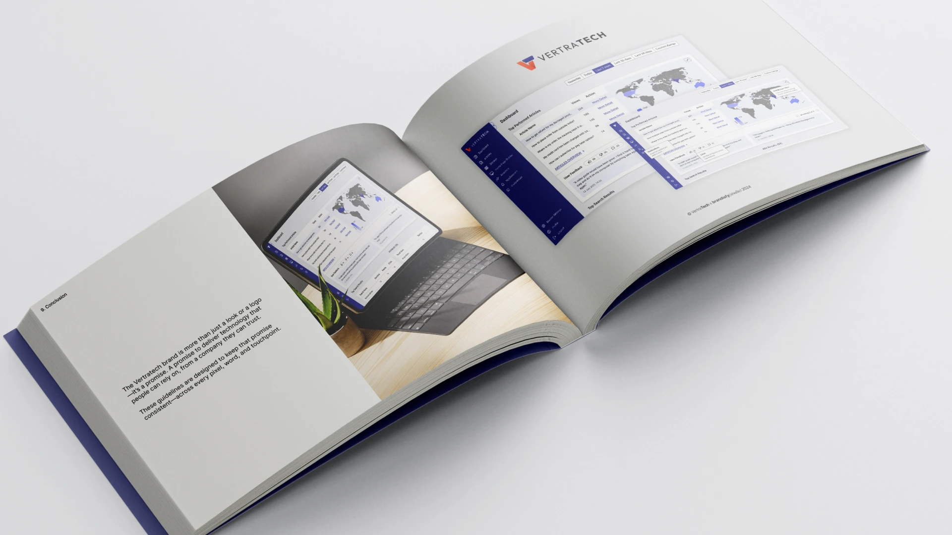 We started from the ground up with Naming. We wanted a name that felt structural and reliable, leading us to Vertratech. From there, we moved into the Visual Identity. Instead of using the typical cold, corporate blues found in tech, we focused on a palette and typography that felt sharp and intentional.